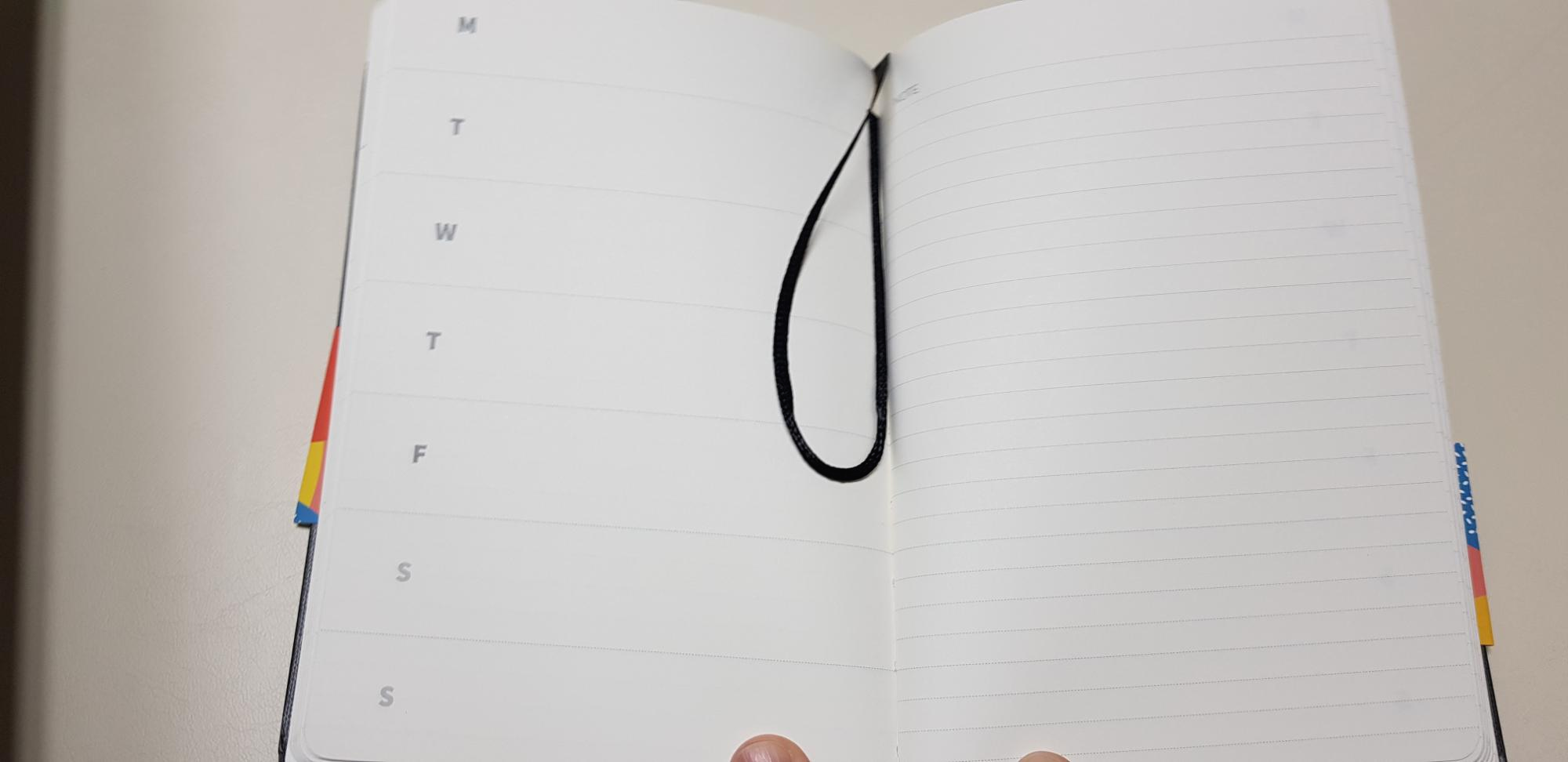 요일 구분과 라인이 그어져 있는 다이어리 입니다.
