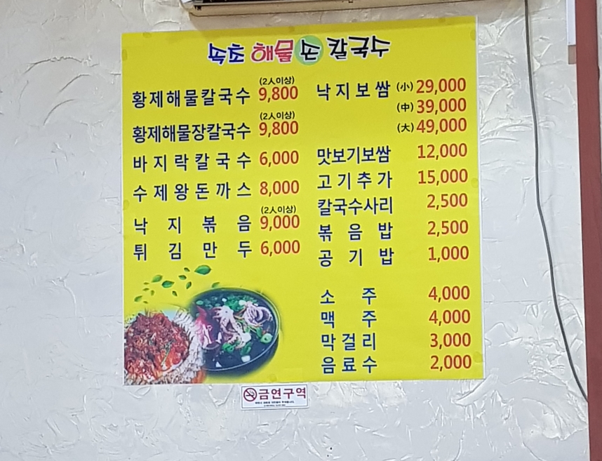 황제해물칼국수 2인분, 장칼국수 2인분, 돈까스, 낙지보쌈 대 짜리로 하나 주문했습니다.