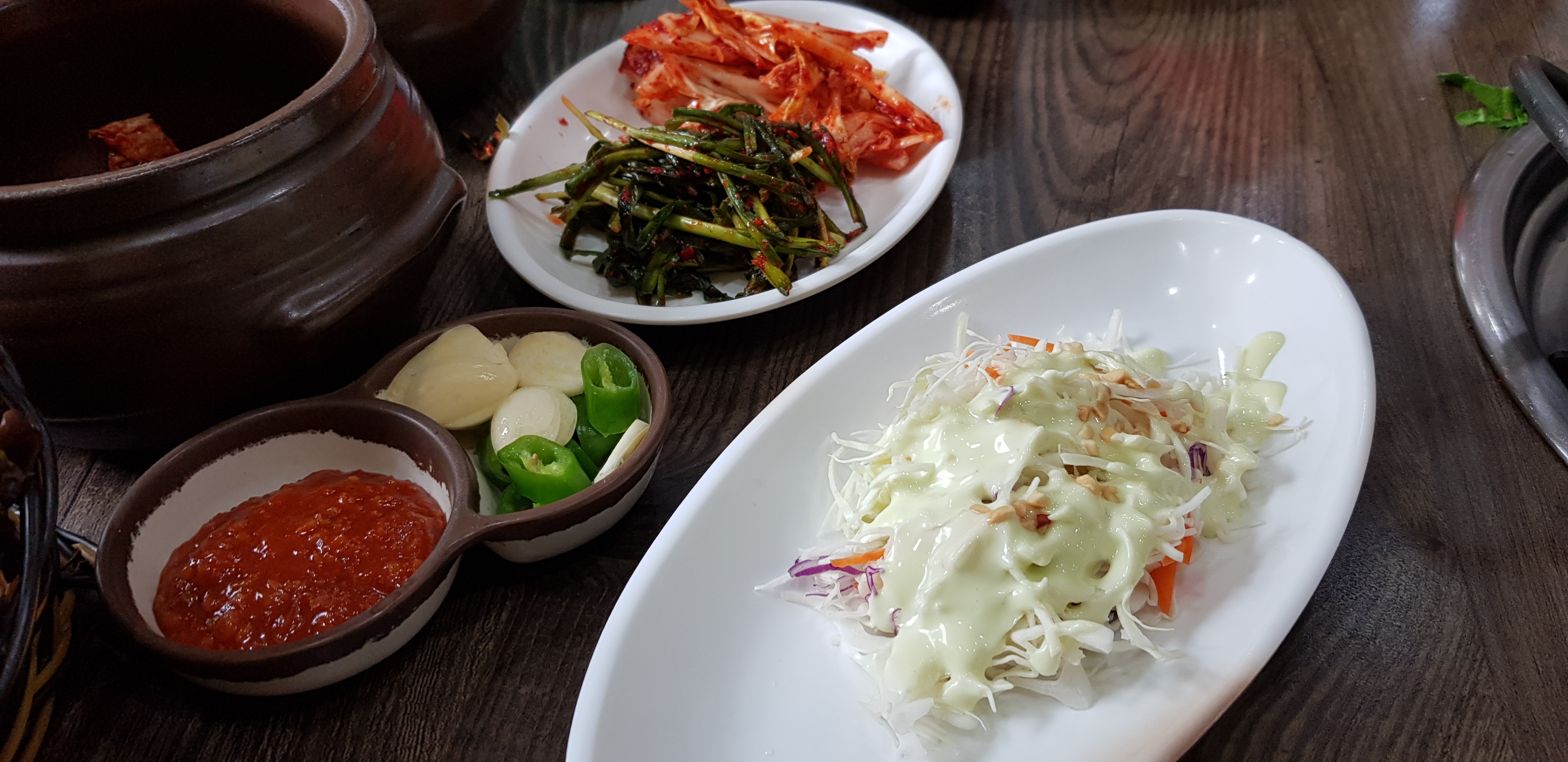 기본찬은 배추김치와 부추김치입니다. 밑반찬 특색은 없습니다.