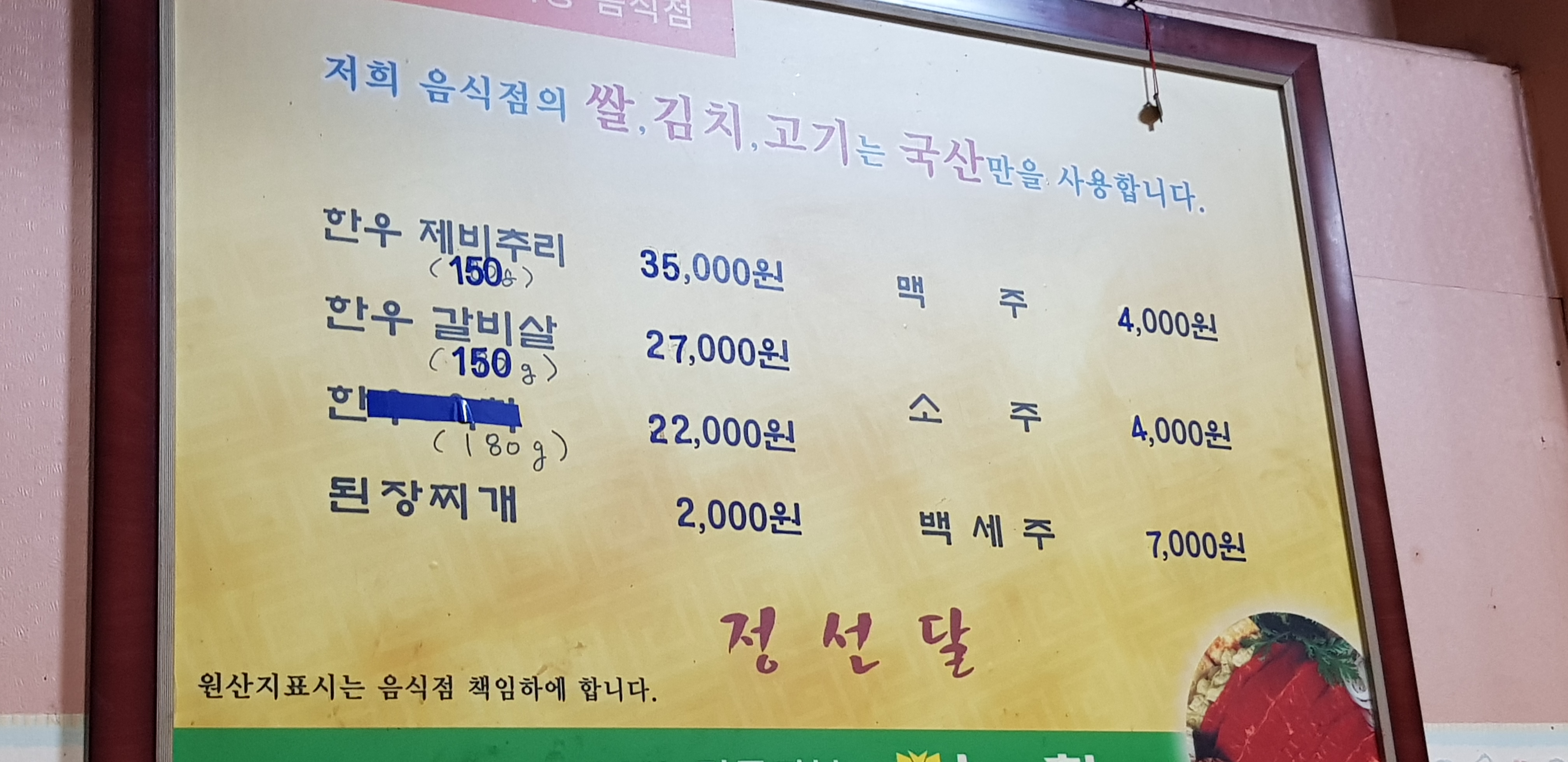 모든메뉴 국산은 기본이고요. 간단하게 제비추리, 갈비살만 팝니다.