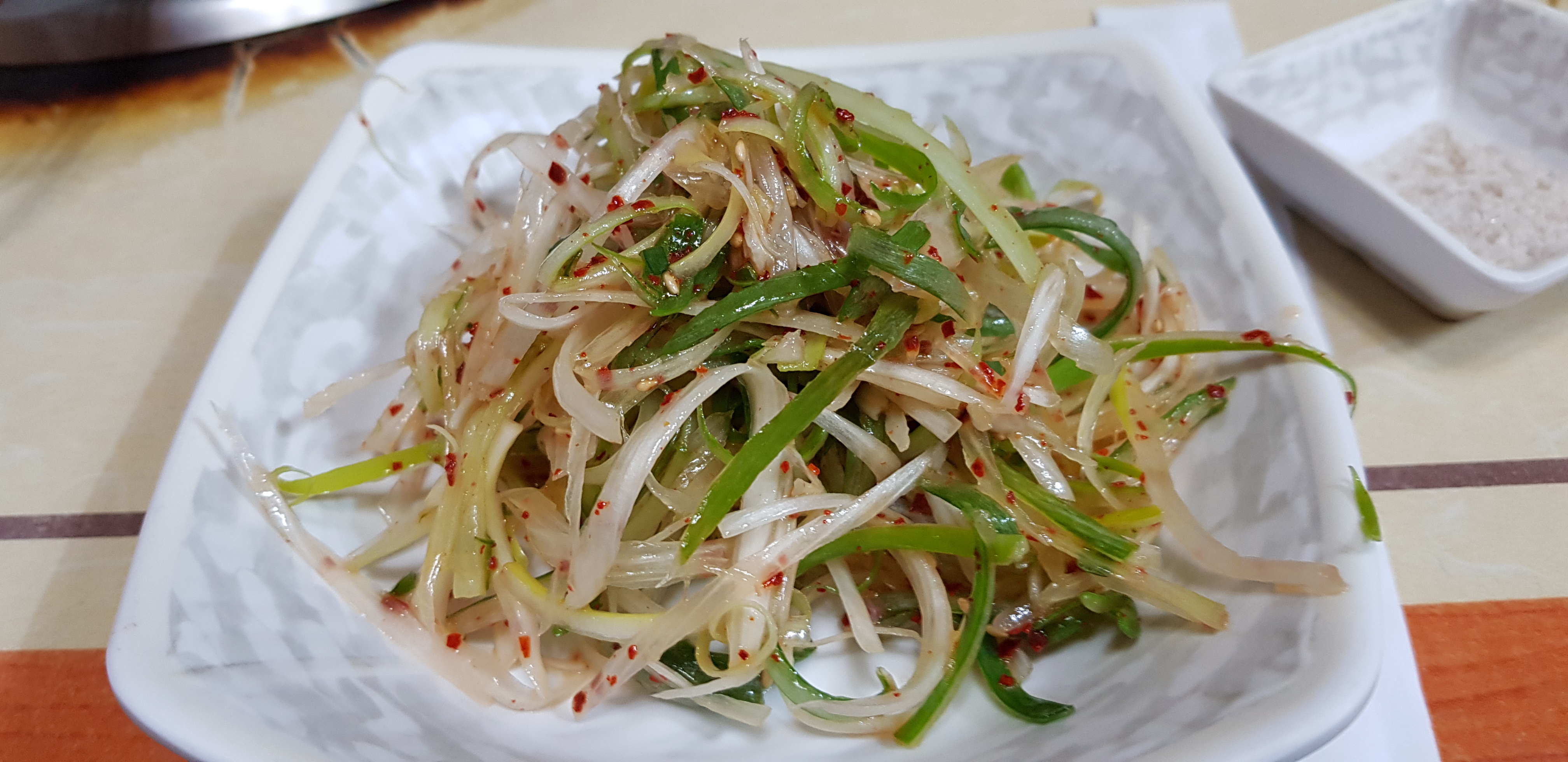 기본찬도 간단해요. 쌈채소와 파절이가 전부.