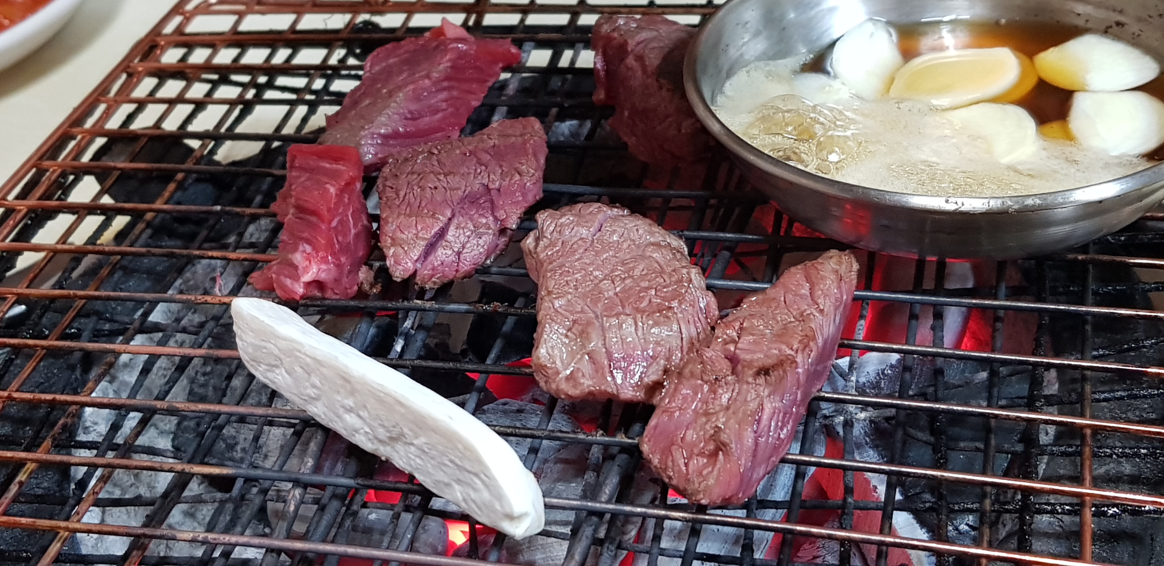 제비추리를 다먹고 이번엔 소갈비살을 시켰네요.