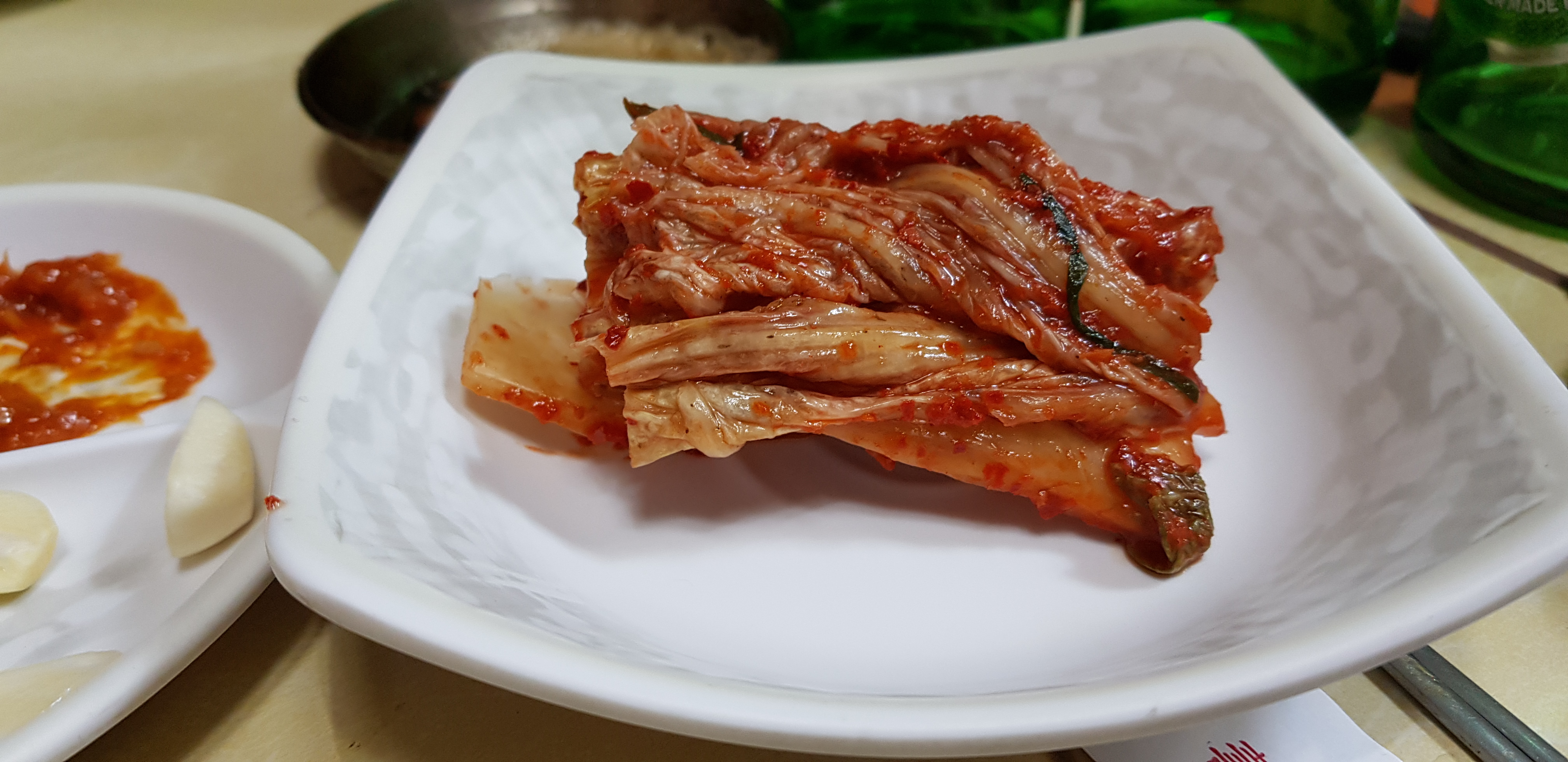 잘 익은 김치 하나 올려서 먹으니 아주 맛있었습니다.