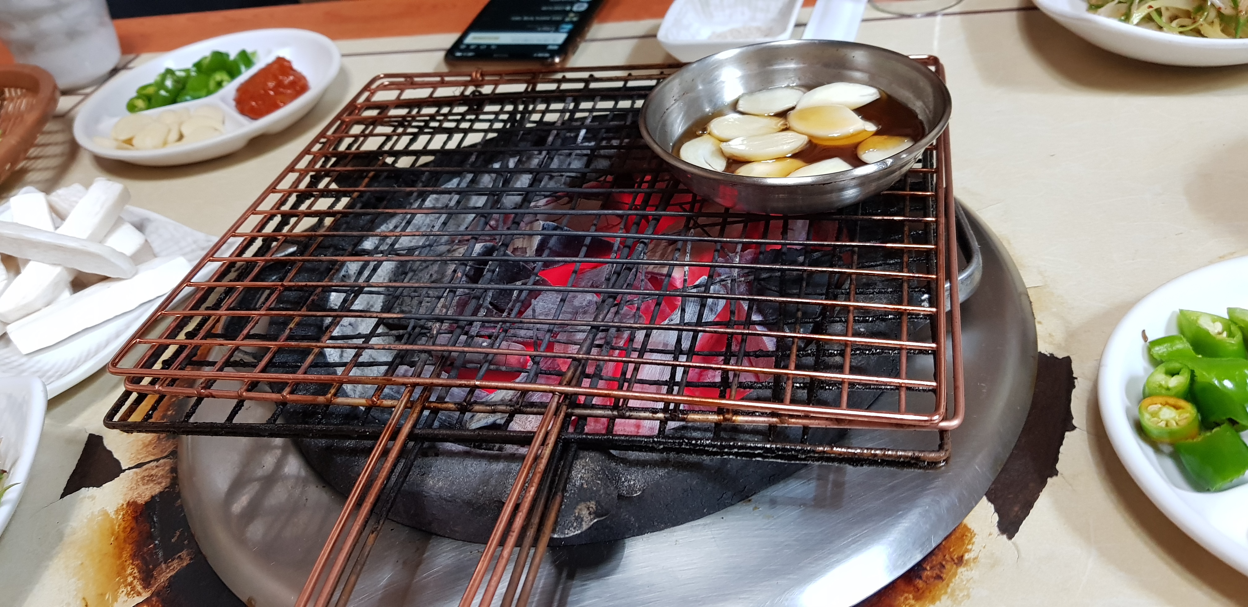 참숯 조은게 들어옵니다. 고기판은 세월의 향기가 물씬나네요.