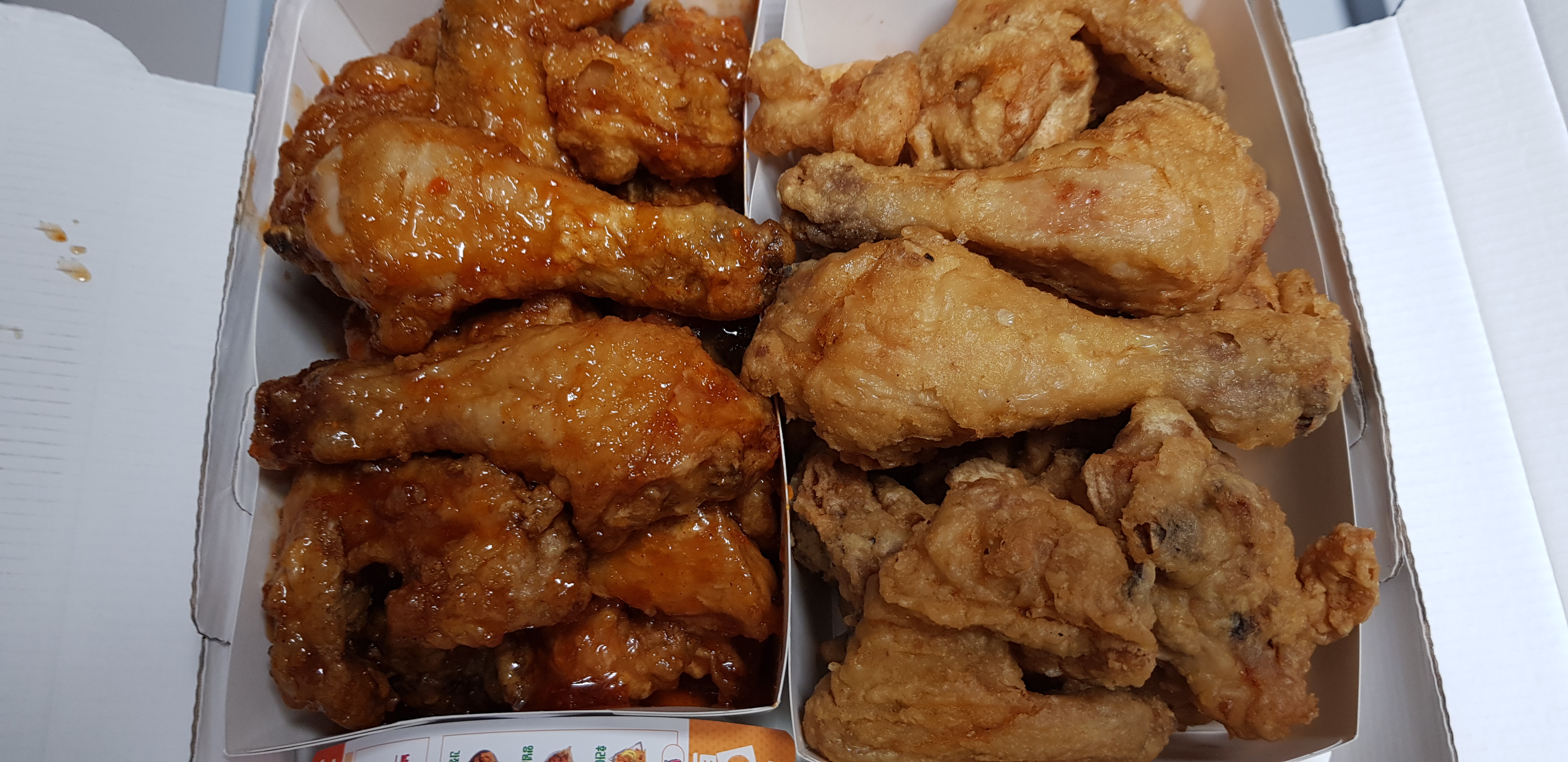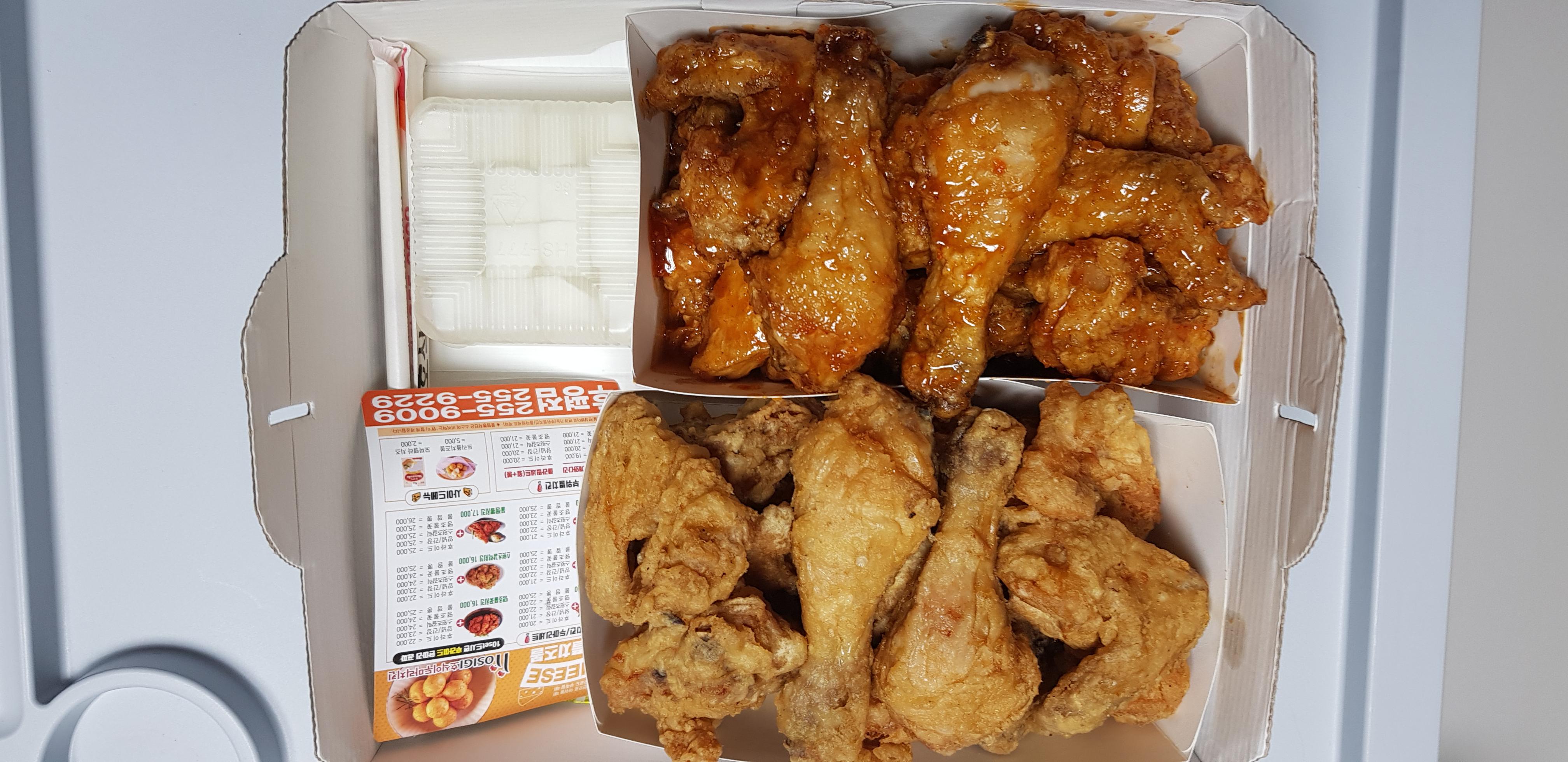 양념과 후라이드 한마리씩 주문했네요.