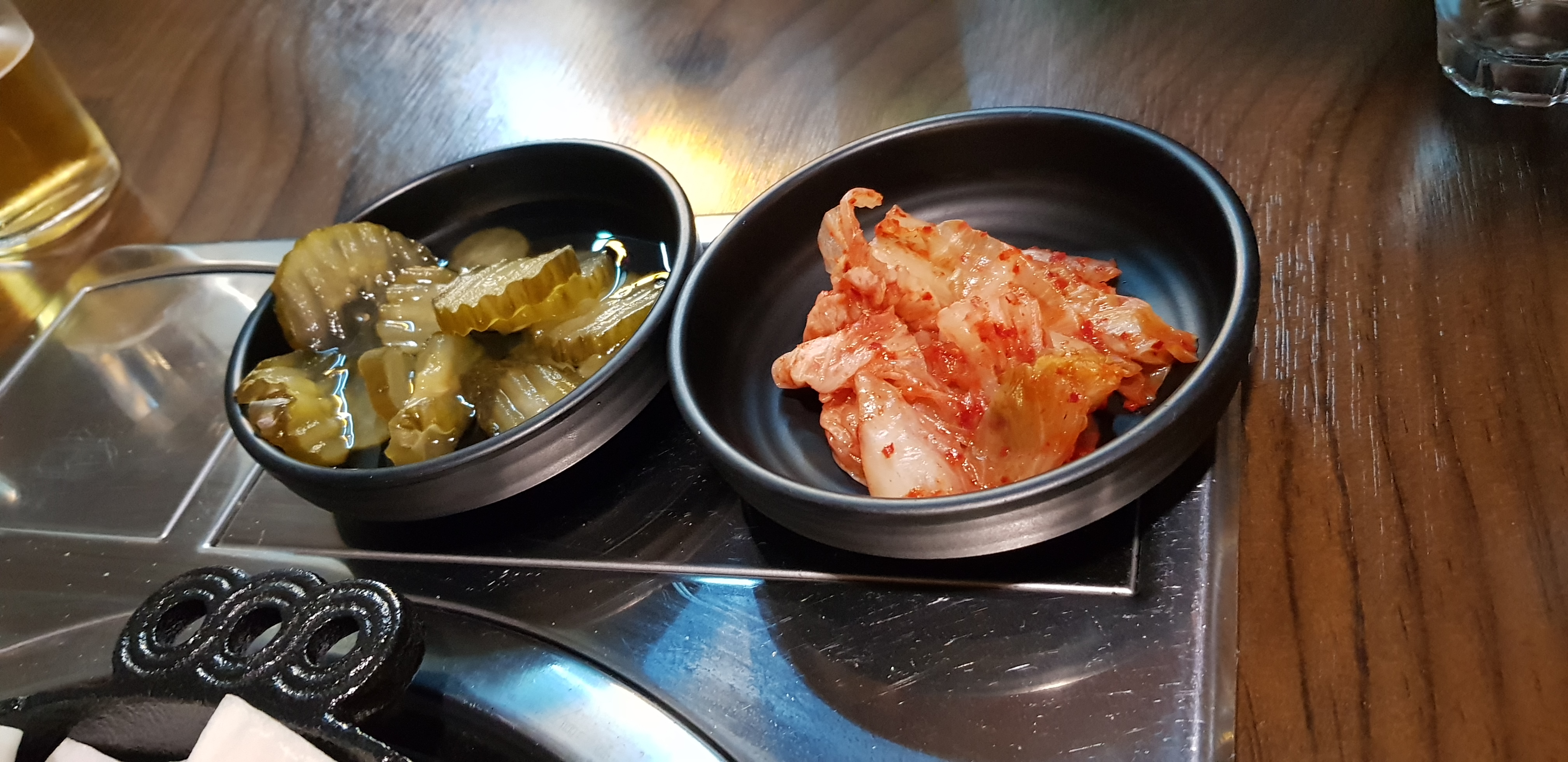 고기와 함께 먹으면 맛있는데 금방 식어서 불판에 잠깐 올렸다가 먹었습니다.