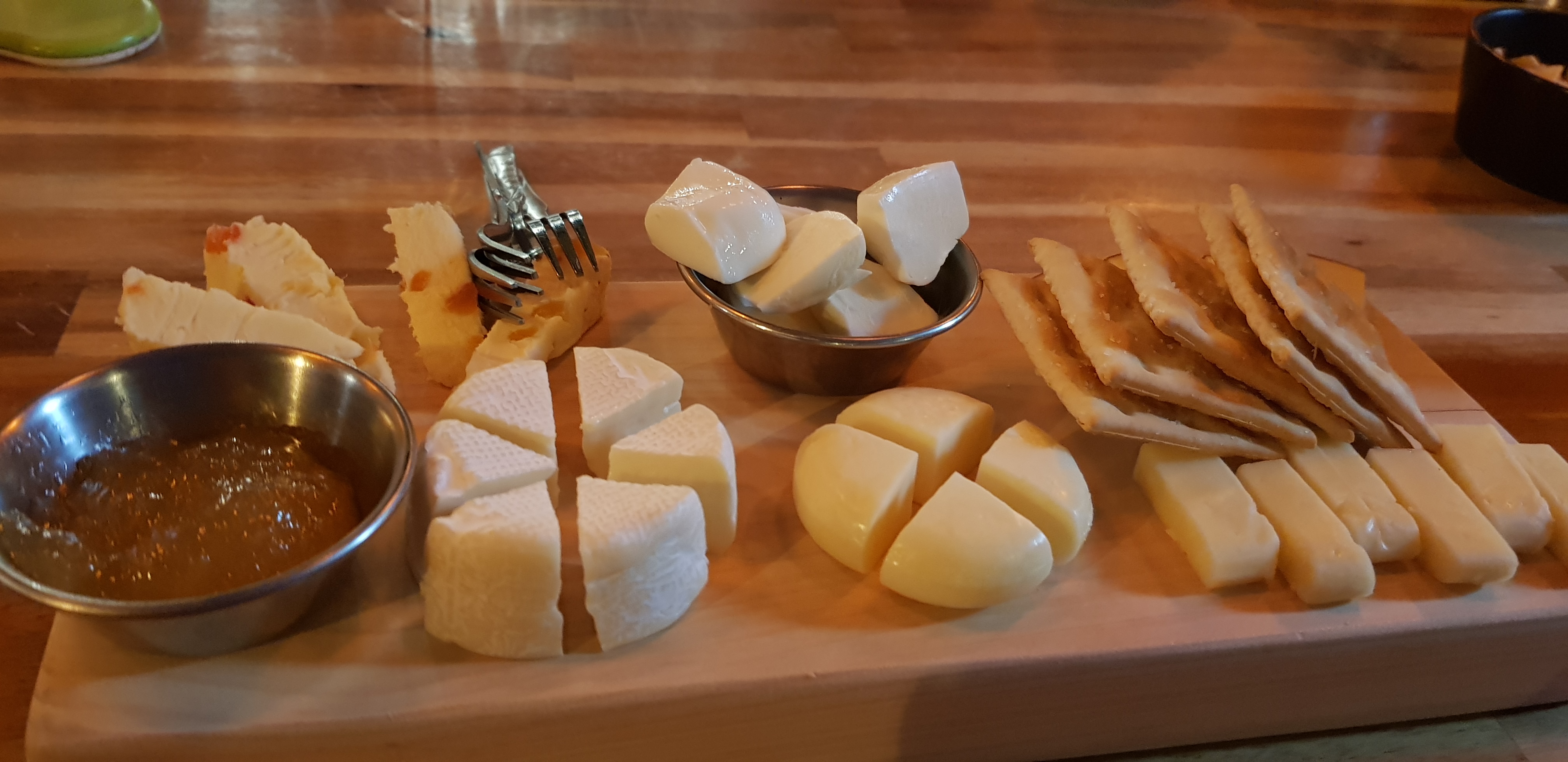 다섯가지 종류의 치즈와 크래커, 쨈이 나왔습니다.