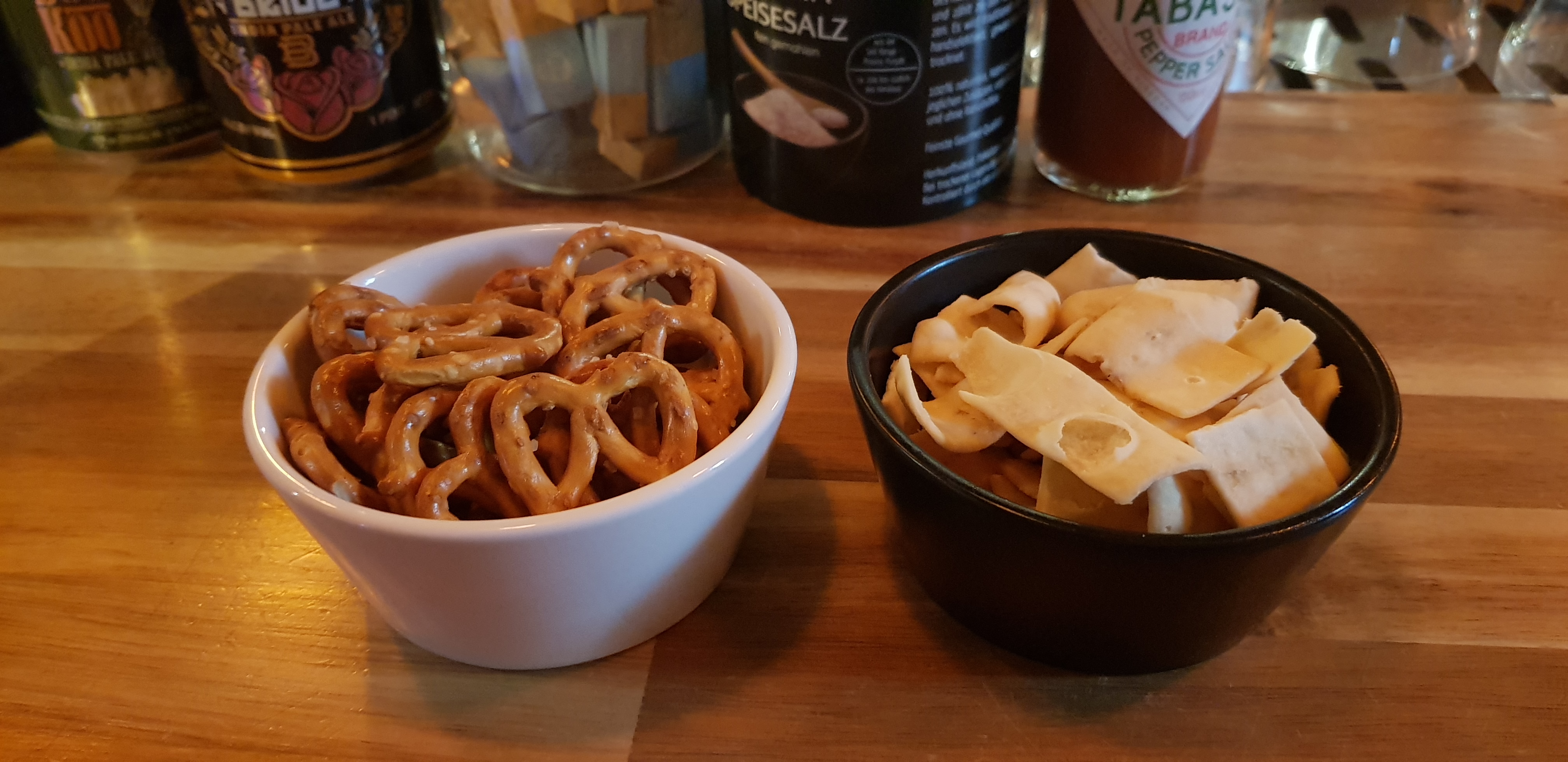 기본 안주는 프레즐과자랑 두부과자~