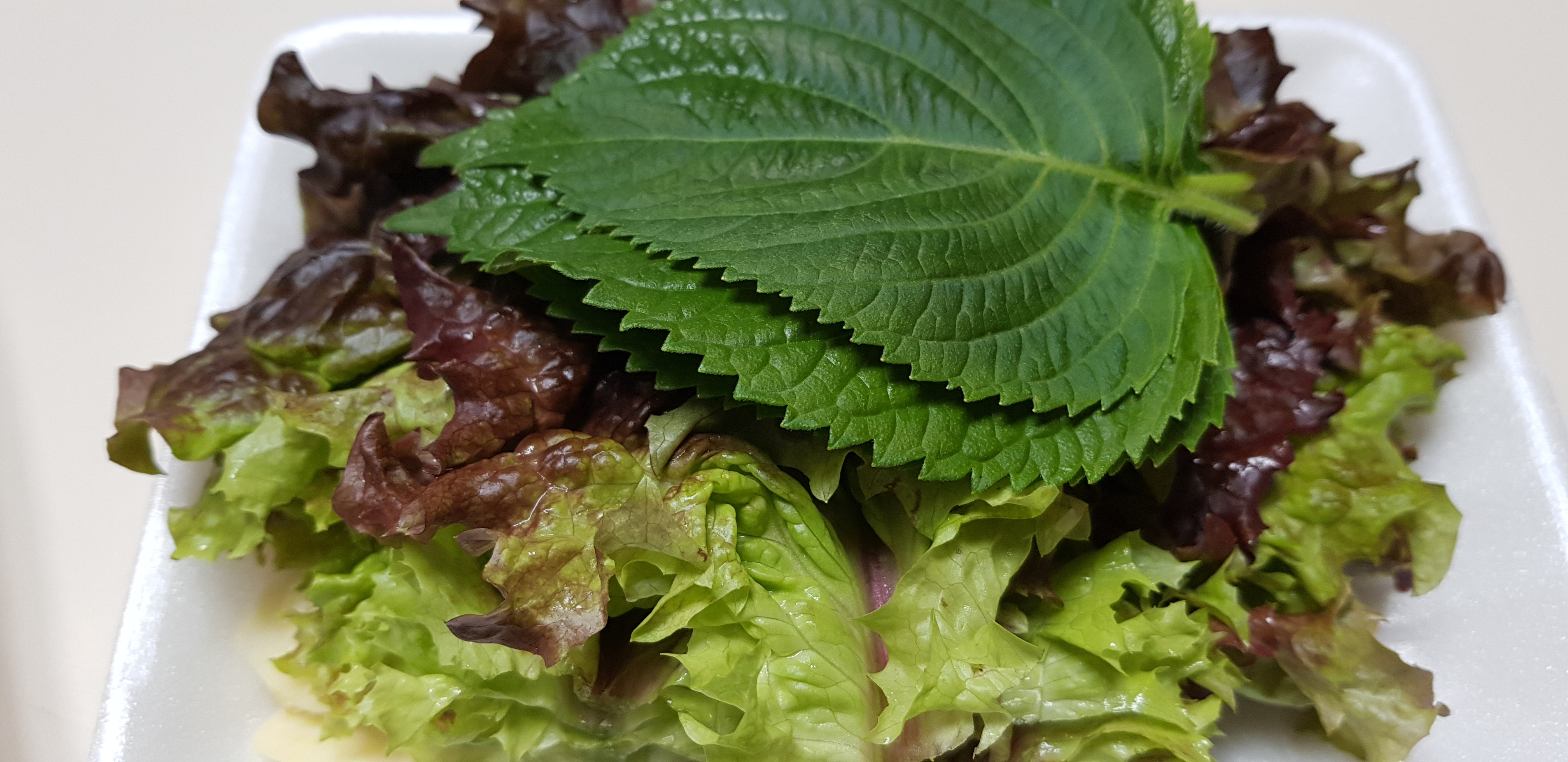 상추와 깻잎. 밑에 청양고추와 마늘이 있습니다.