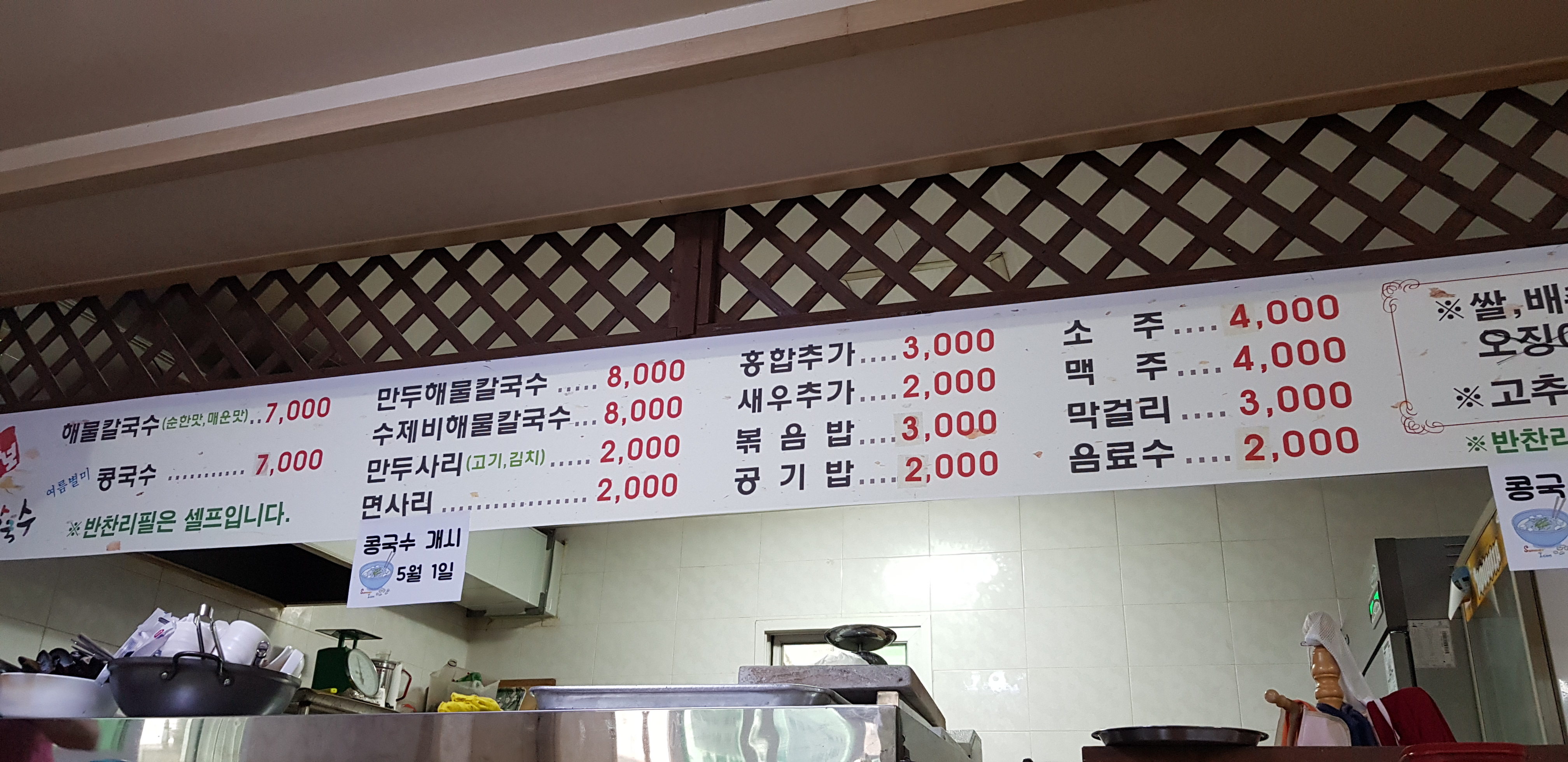 다른 집들도 다 이정도 가격에 팔고 있으니 굳이 적당한 가격이라 생각해 봅니다. 5월부터는 콩국수도 한다고 하네요.