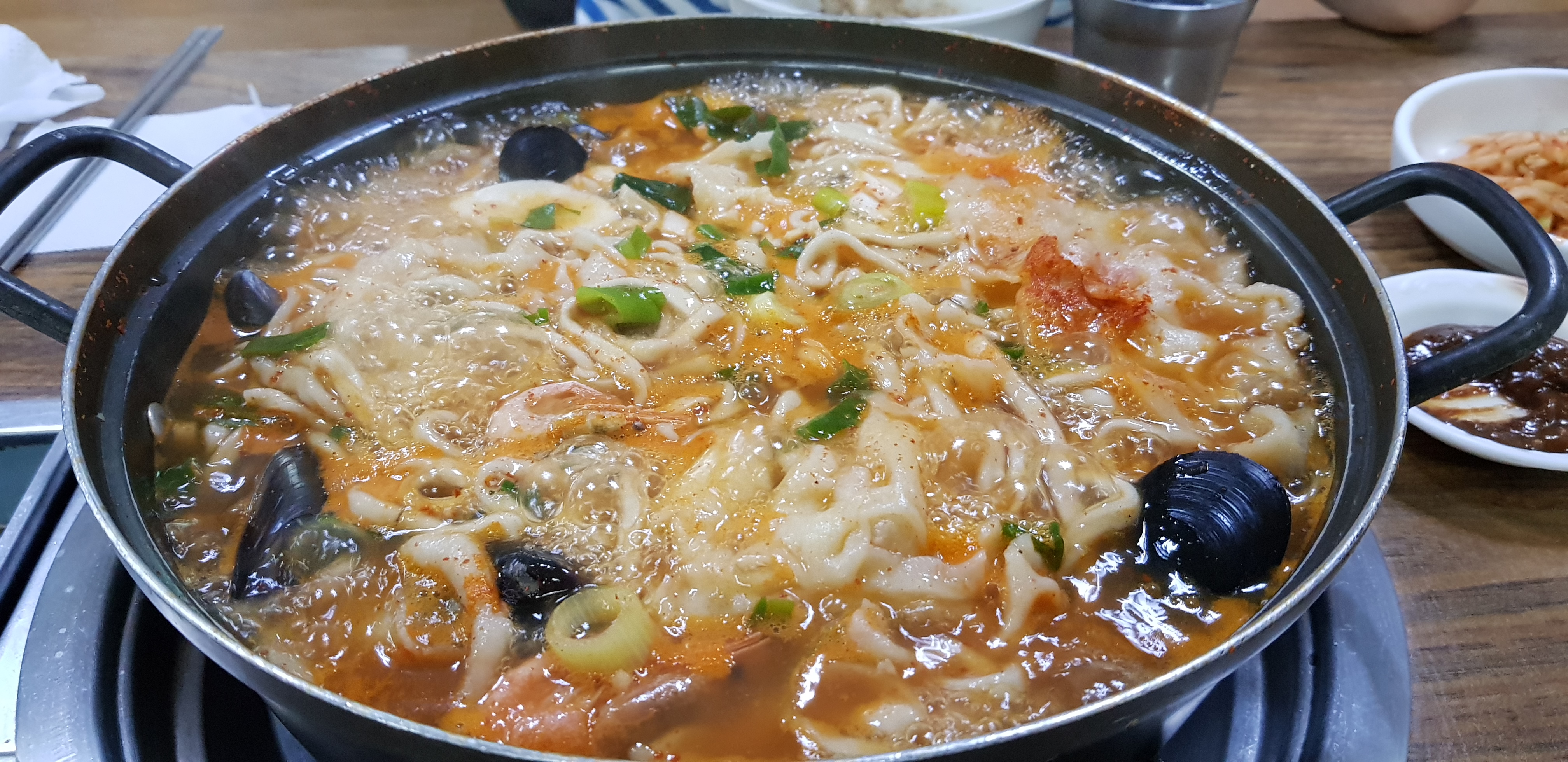 안에 해물이 얼마나 들었나 한번 봅니다. 홍합, 바지락 조금, 미더덕 조금, 작은새우 조금 들어있습니다. 감자와 떡국떡도 약간 들어 있네요. 그런데 해물이 적어도 너무 적습니다. 전에가면 냉면그릇으로 껍데기가 쌓일정도로 주셨던거 같은데 그양이 반정도로 줄었네요. 오징어는 아예 들어있지 않습니다. 오징어 대신 떡을 넣으셨나 싶기도 하고 그전보다 뭔가 많이 아쉬운 느낌입니다.