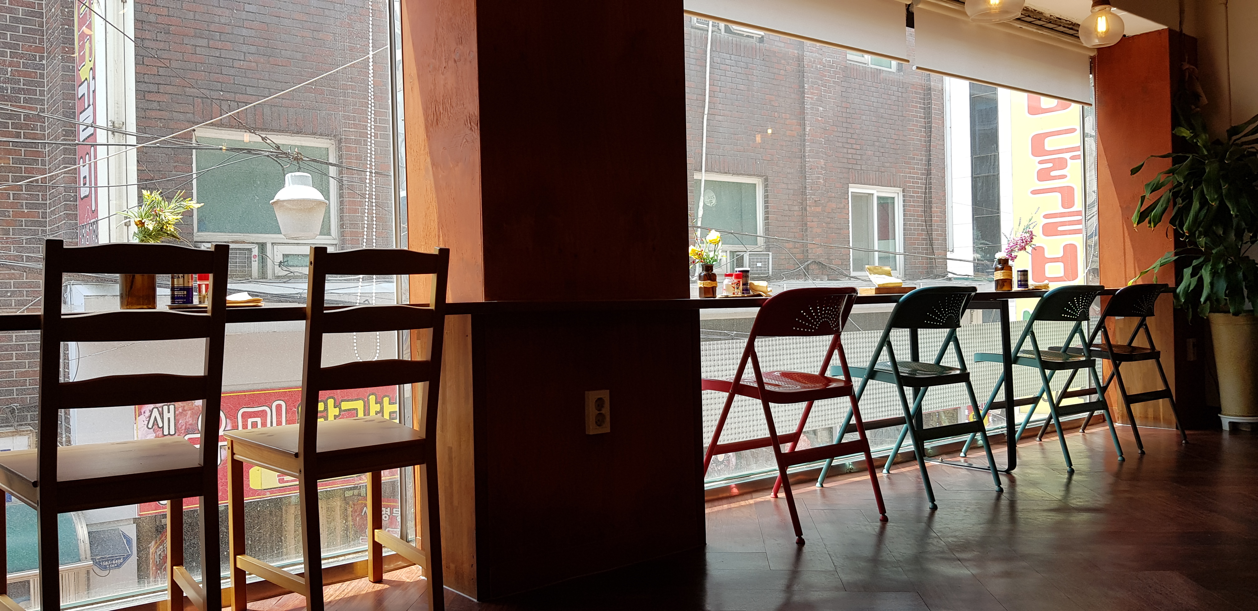 매장안에 들어가 자리를 잡습니다.