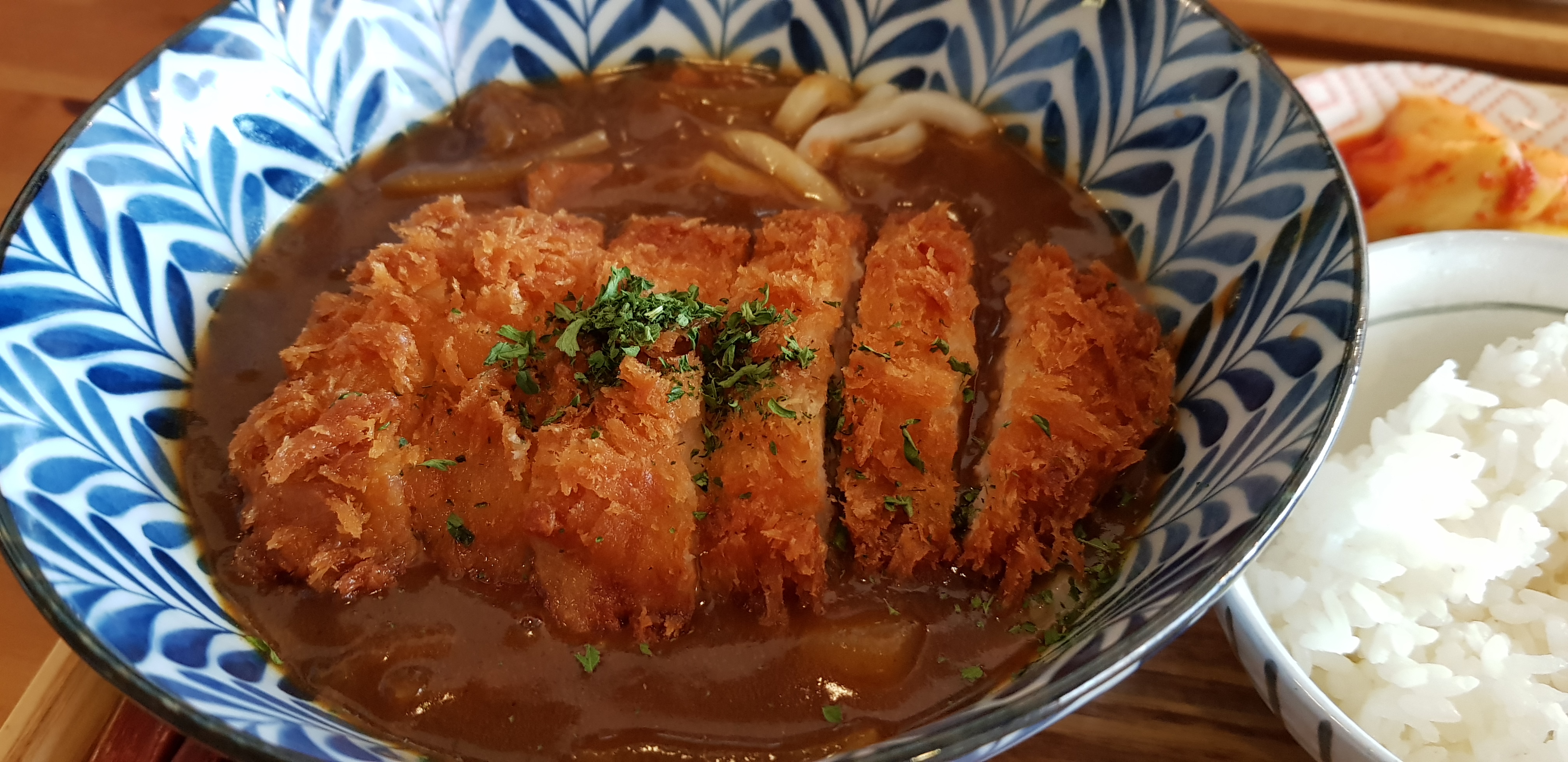쫄깃한 우동면에 카레를 듬뿍 올리고 그위에 돈까스가 올라갑니다. 그릇이 깊어서 우동양은 넉넉했네요. 쫄깃하게 잘 삶아져서 씹는 재미가 좋았습니다. 돈가스도 느끼하지 않게 잘 튀겨져서 맛있었네요. 카레는 일본식 카레입니다. 잘게 자른 채소와 소고기가 조금들어있습니다. 걸죽하지 않고 묽은 느낌인데 싱겁거나 하지 않고 맛있었습니다. 밥에 비벼먹는 느낌이 아니라 말아 먹는 느낌이었네요.
