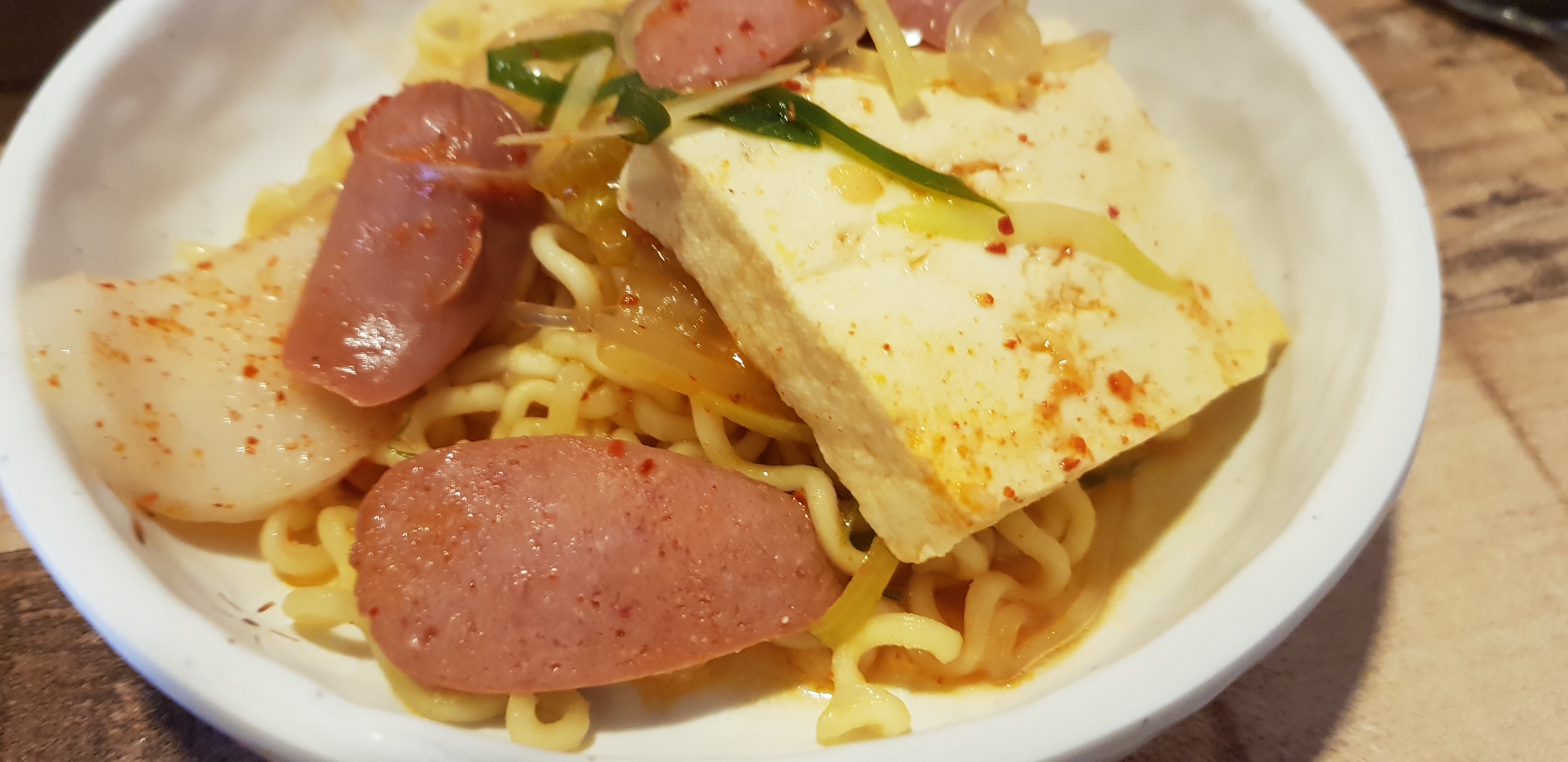 찌개가 나옵니다. 가스가 아니고 인덕션에 올라갑니다. 가스처럼 뜨겁지 않고 가스냄새가 나지 않아서 좋습니다. 햄, 소시지, 두부, 떡국떡, 다진고기, 떡국떡이 들어 있고 콩나물이 듬뿍 들어 있고 당면도 약간 들어 있네요. 라면사리를 넣고 푹 끓여 봅니다. 국물이 약간 심심해서 국물을 푹 끓여야 국물 맛이 우러나는거 같습니다.