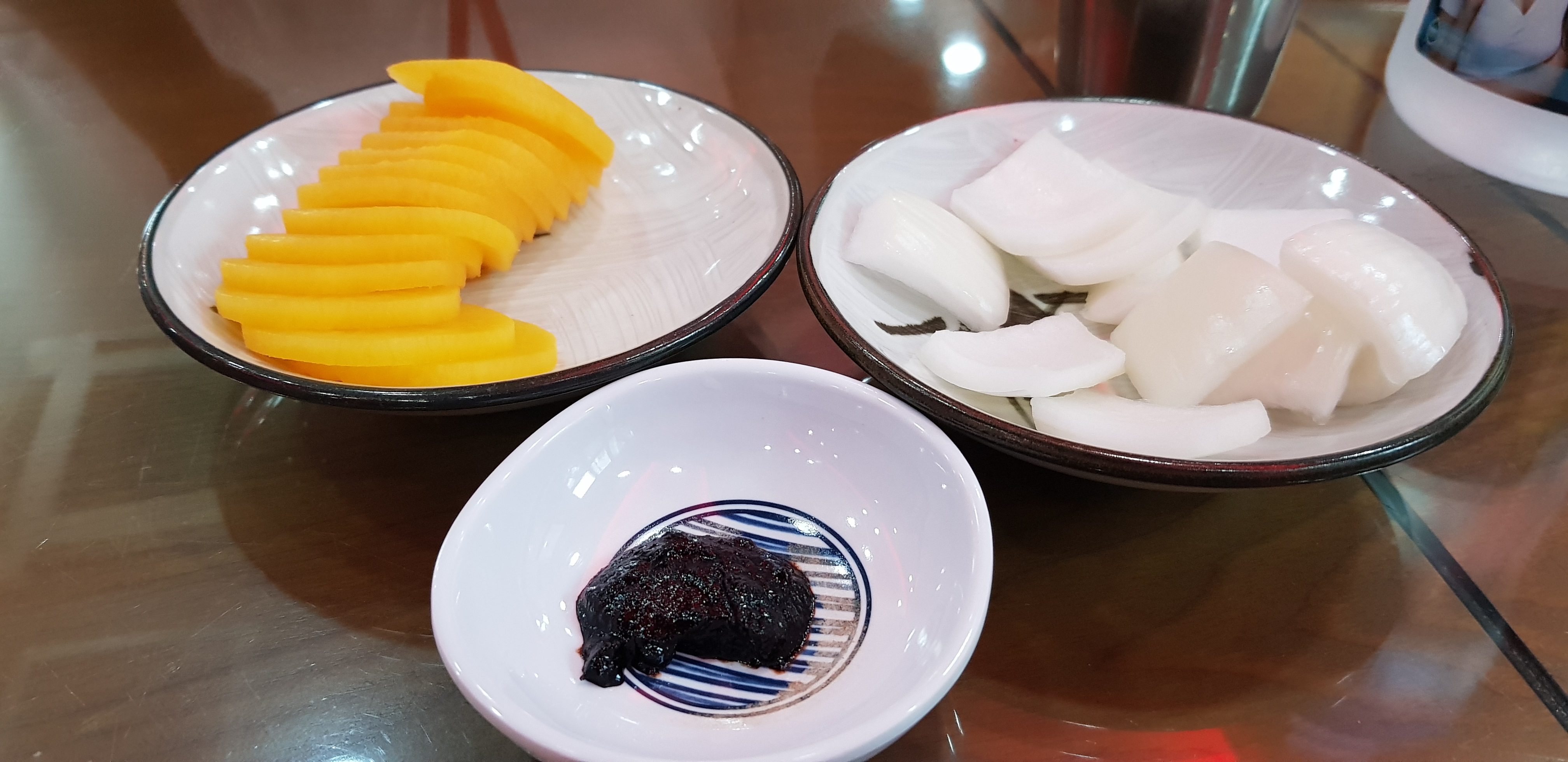 식기가 깨끗하네요. 단무지맛은 평범합니다. 양파는 양파맛이구요.^^ 춘장맛은 기억이 잘 안나네요. ㅎㅎ