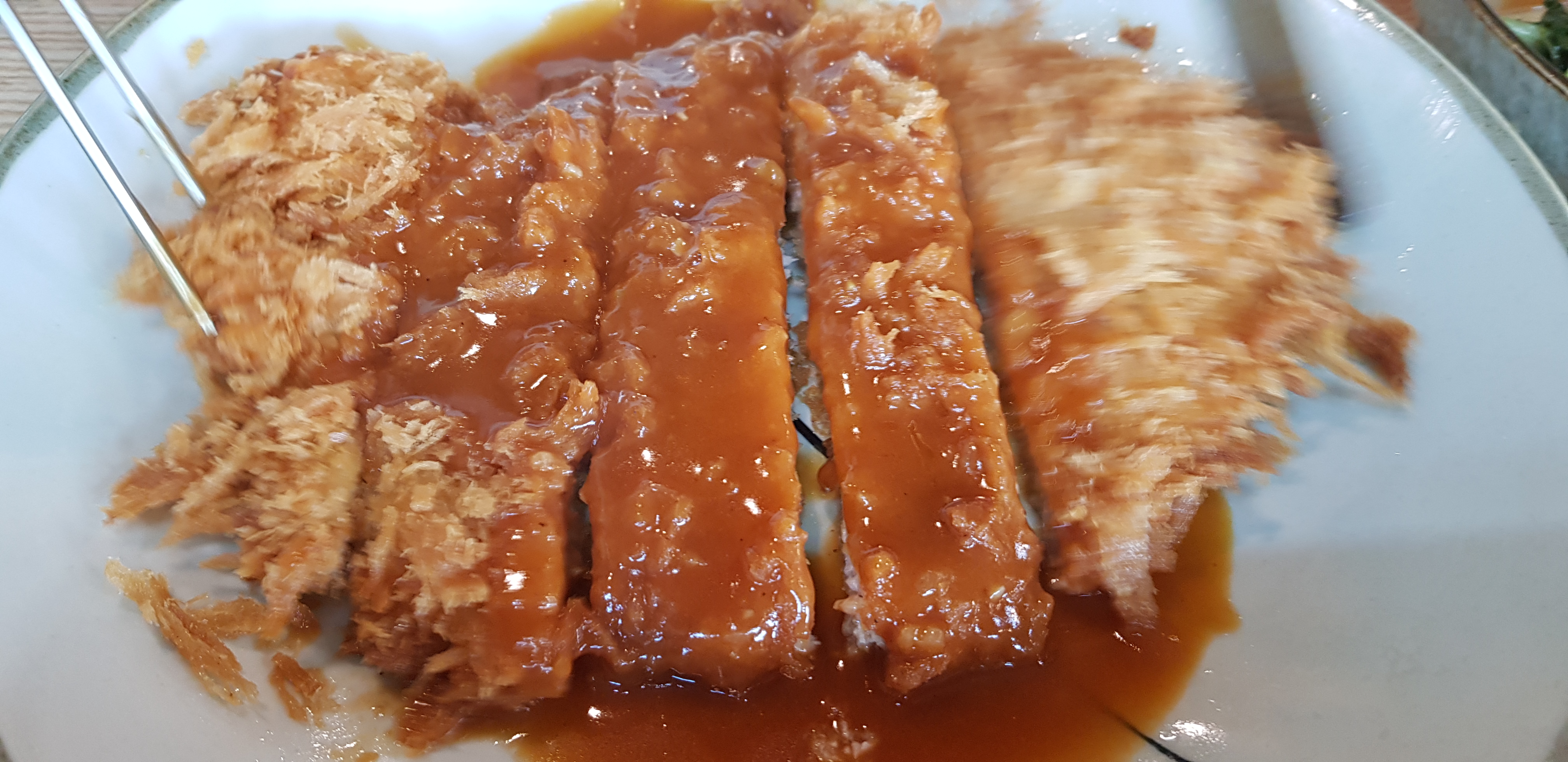 돈가스가 적당히 잘 튀겨져서 부드럽고 소스도 맛있습니다. 사이드로 먹기에는 부족한 양이 아니라서 괜찮았습니다.