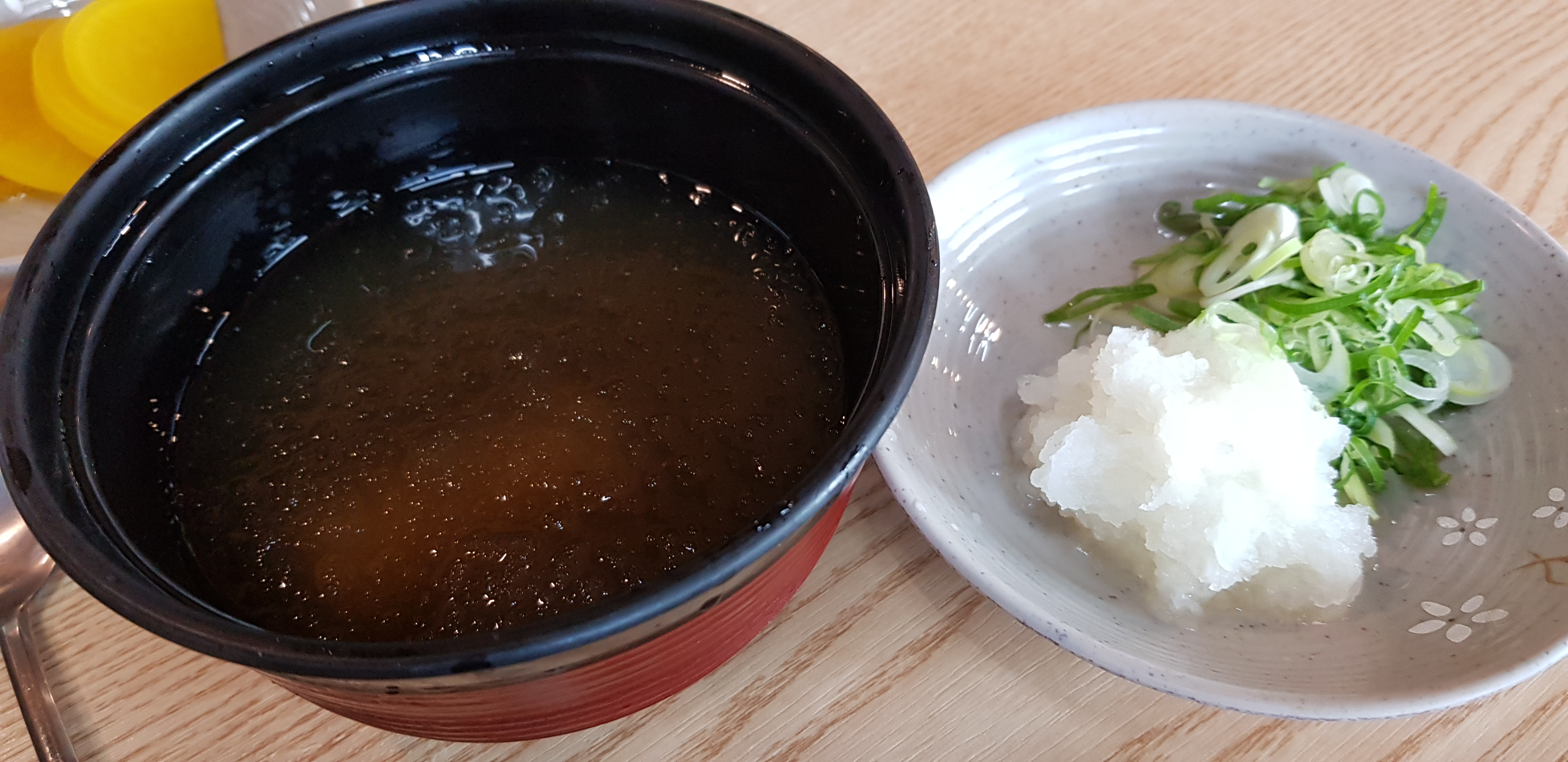 판모밀은 두덩이가 나오네요. 육수와 간무, 파가 함께 나옵니다. 육수에 무와, 파, 겨자를 조금 넣어주고 한덩이씩 넣어서 먹으면 됩니다. 모밀 삶기는 적당하고 육수는 너무 짜거나 달거나 하지 않습니다. 간도 적당해서 먹기 좋았습니다. 더운 여름에 먹으면 제격이 아닐까 싶었네요. 국수를 좋아해서 양이 많게 느껴지지는 않았습니다. 국물도 함께 마시니 좋았네요.