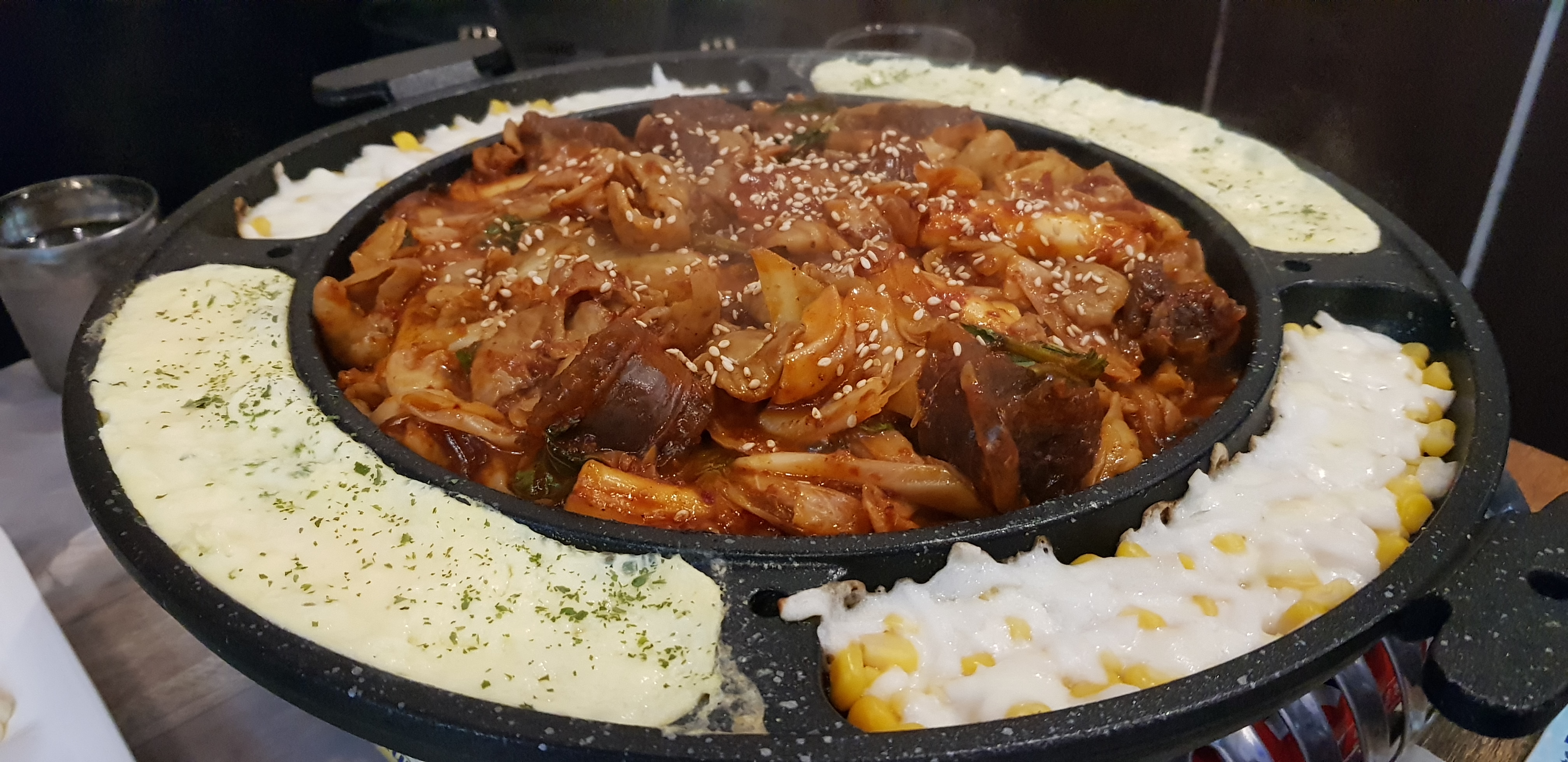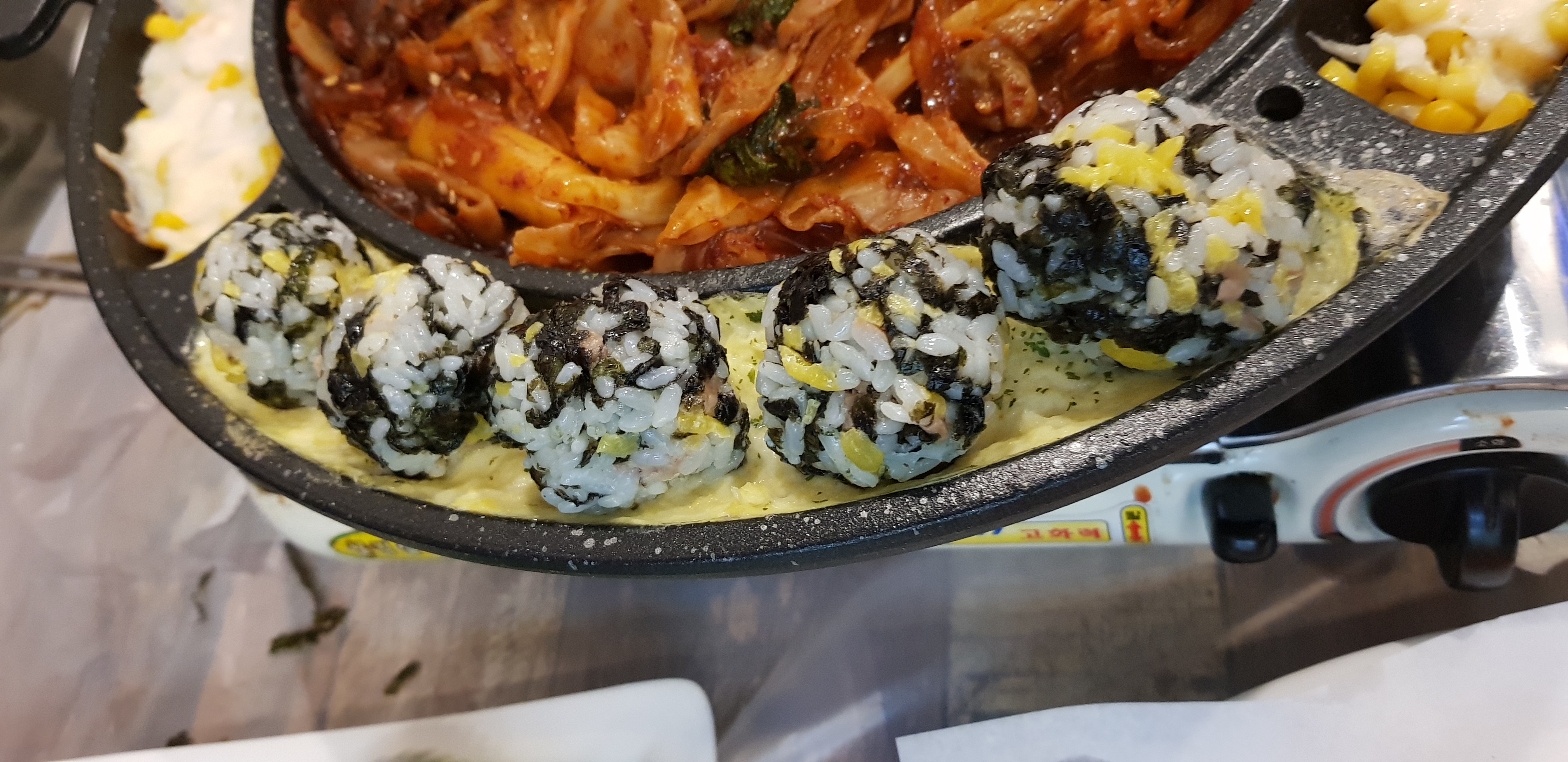 양 옆으로 계란찜과 콘치즈가 나옵니다. 곱창볶음과 곁들이니 괜찮았습니다.